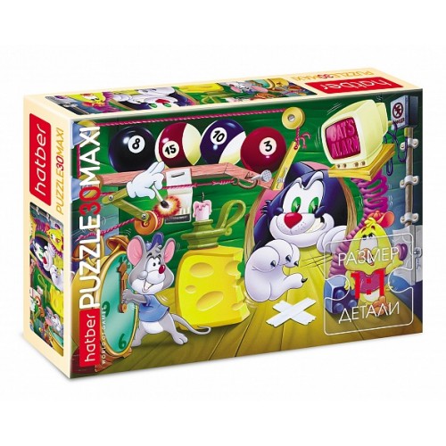 Пазлы ХАТБЕР А4 30 элементов "MAXI-ПРИКЛЮЧЕНИЯ КОТА И МЫШОНКА" 210х290мм (077788)..
