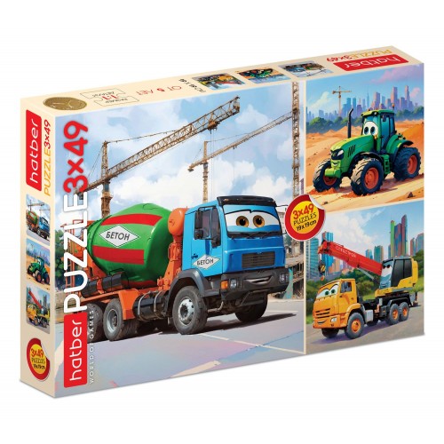 49ПЗ5_34864 ПАЗЛЫ для детей 49 элементов А5ф 190х190мм "3 картинки в 1 коробке" -Стройтехника-..