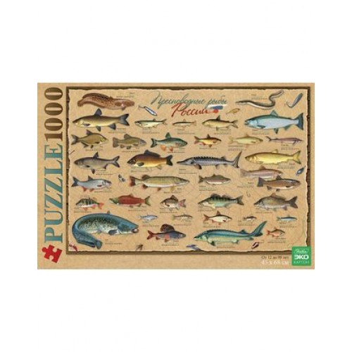 Пазлы ХАТБЕР А2 1000 элементов "КРАФТ ЭКО "ПРЕСНОВОДНЫЕ РЫБЫ РОССИИ", 450х680мм (1/7) (1000ПЗ2_15106