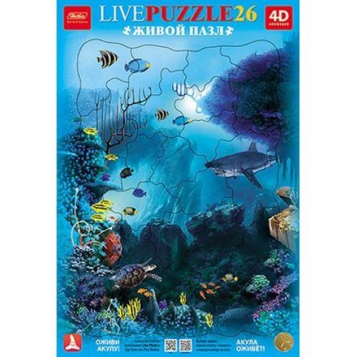 Пазлы ХАТБЕР А4 26 элементов "ЖИВОЙ 4D ПАЗЛ "АКУЛА", 200х300мм, в рамке (20) (26ПЗ4_13176) (037501)