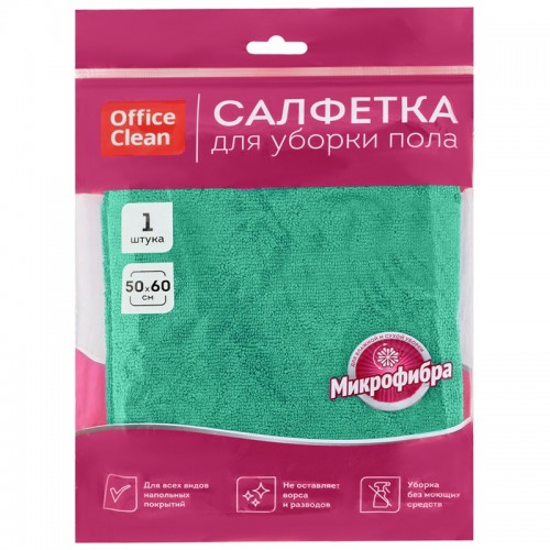 Салфетка для мытья пола OfficeClean "Премиум", зеленая, микрофибра, 50*60см, индивид. упаковка..