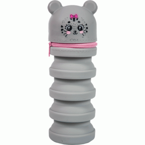 Пенал "deVENTE. 100% Cute. Cat" 20x6,5x6,5 см, фигурный, силиконовый, на молнии, увеличивающийся, в пластиковой коробке с европодвесом, серый