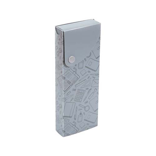 Пенал "deVENTE. School" 20x7,4x2,7 см, прямоугольный, выдвижной, на кнопке, пластик 600 мкм, фактура "песок" серый с дизайном, в пластиковом пакете