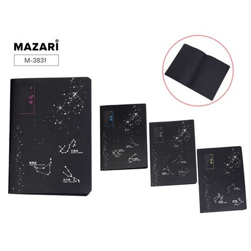 БЛОКНОТ CONSTELLATION 2, 17,5 х 25,5 cм, 20 листов, черный внутренний бумажный блок, плотность бумаги 120г/м2, 4 дизайна в ассортименте