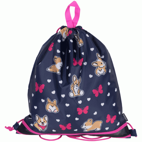 Сумка для сменной обуви "deVENTE. Corgi" 40x47 см, водоотталкивающая ткань, на веревочной завязке, с вставкой из пластиковой сетки для вентиляции, с петлей для крючка и переноски..