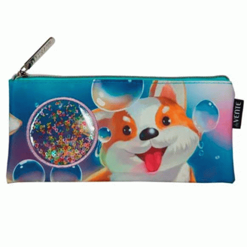 Пенал "deVENTE. Hey Corgi" 21,5x9x1 см, плоский, на молнии, фактурная искусственная кожа, с подкладом, с декоративным элементом с конфетти