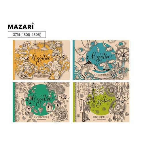 Скетчбук 240х165 мм, 36 л., плотность бумаги 100 г, твердая обложка, ассорти 4 дизайна 3751 (1805-1808)..