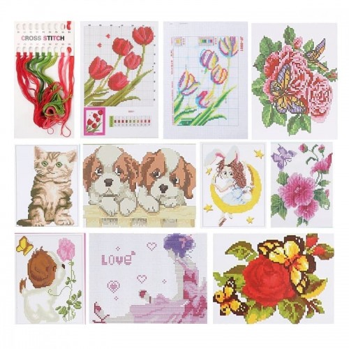 Набор для вышивания крестом 20 х 29 см, в ассортименте 12 дизайнов. В наборе: схема, канва белая с нанесением рисунка, металлическая игла, нитки., европодвес..