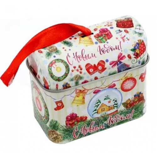 Украшение новогоднее подвес. Сундучок с новогодним пожеланием черный металл 7*4*6,1см..