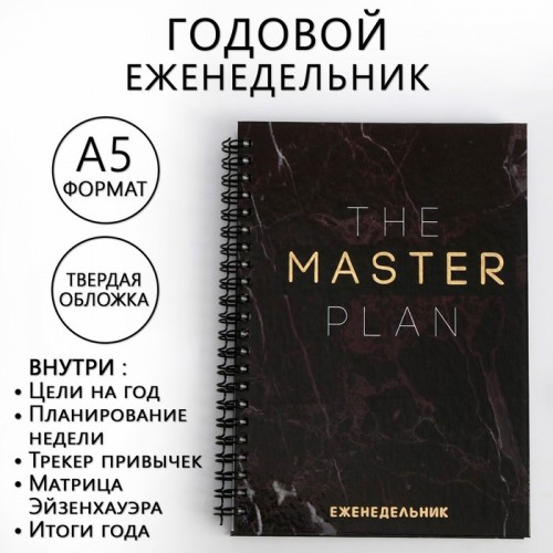 Еженедельник А5, 86 листов The master plan в твердой обложке с тиснением..