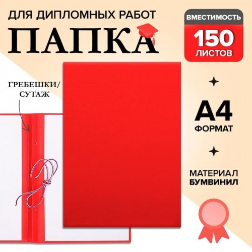 Папка для дипломных работ (без надписи) бумвинил, гребешки/сутаж, без бумаги, красная (вместимость до 150 листов)
