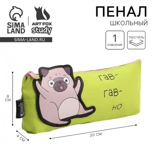 Пенал текстильный ArtFox "Гав-гав" Мопс, 19*8*3 см 7624473..
