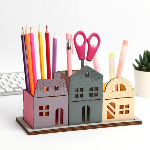 Органайзер для канцелярии тройной, на подставке «Розовый дом», 6,5 х 6,5 х 10,2 см..