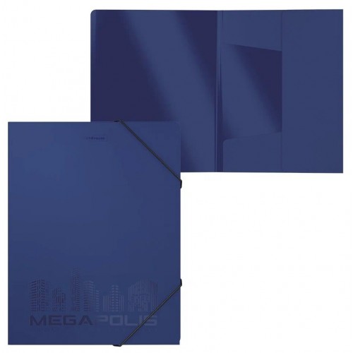 Папка на резинке А4 ErichKrause "MEGAPOLIS", корешок 5 мм, толщина 600 мкм, тиснение "песок", синяя