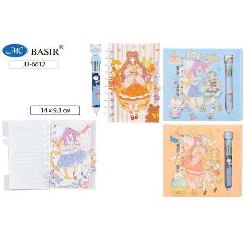 Блокнот детский+10-ти цветная авторучка: "ДЕВОЧКА"; в подарочной упаковке /18,3*17,3 см/; яркая, цветная обложка 7БЦ /ассорти/, блок-клетка, линейка с разделителями, двойная евроспираль, 55 листов, 14*9,3 см...