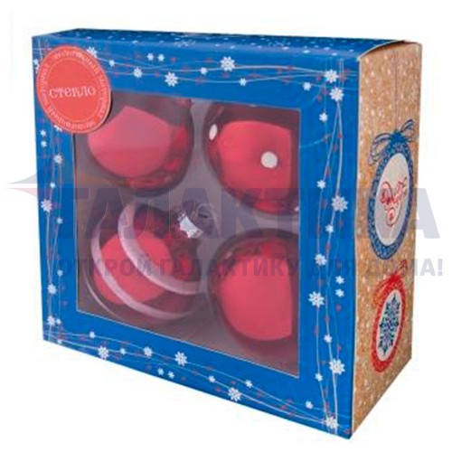 Новогоднее подвесное украшение - шар Красный с белым из стекла, набор из 4 штук / 6x6x6см..
