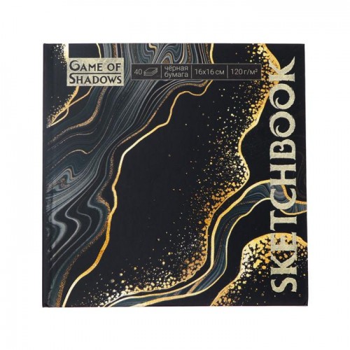 Скетчбук 160 х 160 мм, 40 листов "Мрамор", твёрдая обложка, матовая ламинация, выборочный лак, блок чёрная бумага 120 г/м2..