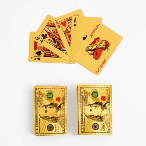 Карты игральные пластиковые "100$", 55 шт, 32 мкм, 9х6 см, золотые 4484734..