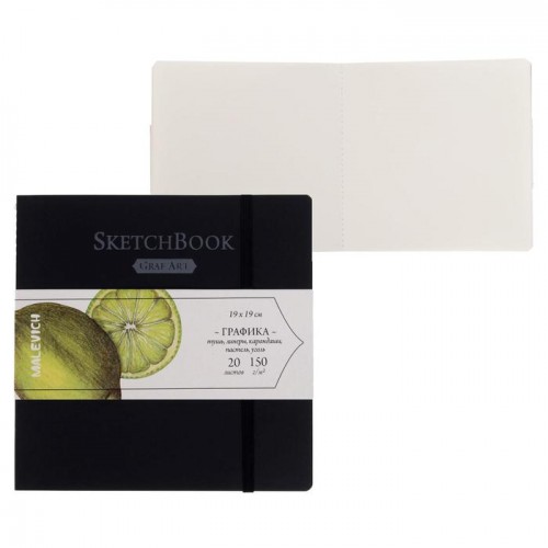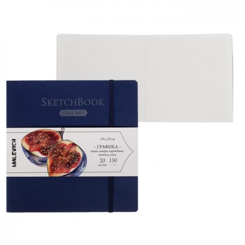 Скетчбук для графики, 190 х 190 мм, «Малевичъ», Graf'Art, 20 листов, 150 г/м2, синяя обложка