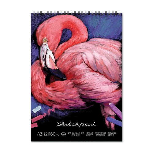 Альбом для пастели, размер297х420 мм, количество листов 30, гребень, чёрная бумага с хлопковым волокном..