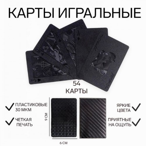 Карты игральные пластиковые "Абстракция", 54 шт, чёрные матовые, 32 мкр, 9х6 см 3254072..