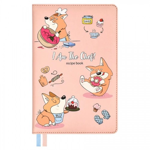 Книга кулинарных рецептов А5 КОРГИ ПОВАР кожзам, 140x215 мм, 144 л., твёрдый переплёт с поролоном..