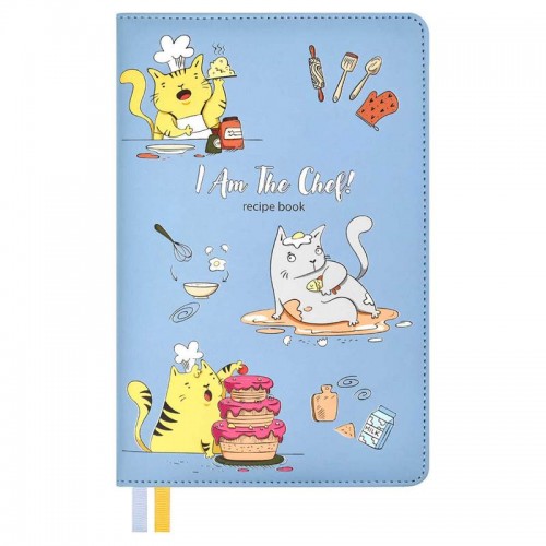 Книга кулинарных рецептов А5 КОТ ПОВАР кожзам, 140x215 мм, 144 л., твёрдый переплёт с поролоном..