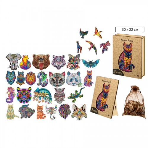 Пазлы деревянные А4 "ЖИВОТНЫЕ" деревянная коробка..