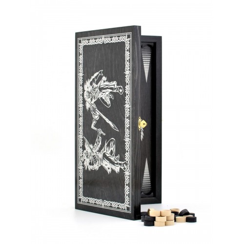 Нарды малые “Индейцы” (400*200*40) черные,рисунок серебро..