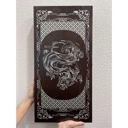 Нарды деревянные "Водный дракон", венге, рисунок серебро 60х30х4 см..