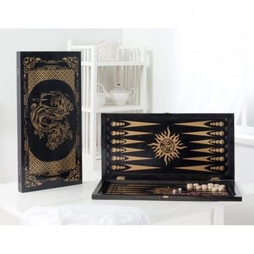 Нарды большие черные, рисунок золото "Водный дракон" 066-12..