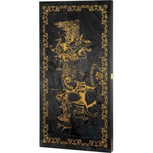 Нарды большие черные, рисунок золото "Рыцари" (600*300*40) /463 111 114 9430/..