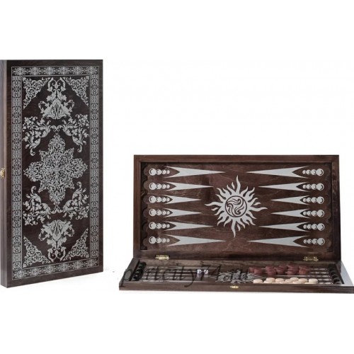 Нарды большие венге, рисунок серебро "Восточная звезда" (600*300*40) /463 111 114 9522/..