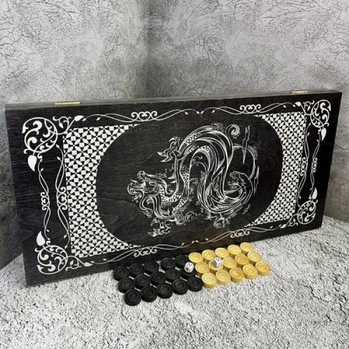 Нарды большие "Драконы", черные, золото, 60х30х4 см..