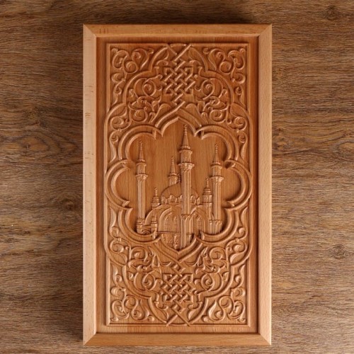 Нарды резные "МЕЧЕТЬ КУЛ-ШАРИФ", буковая доска, с полем для игры в шашки, 50 х 58 см..